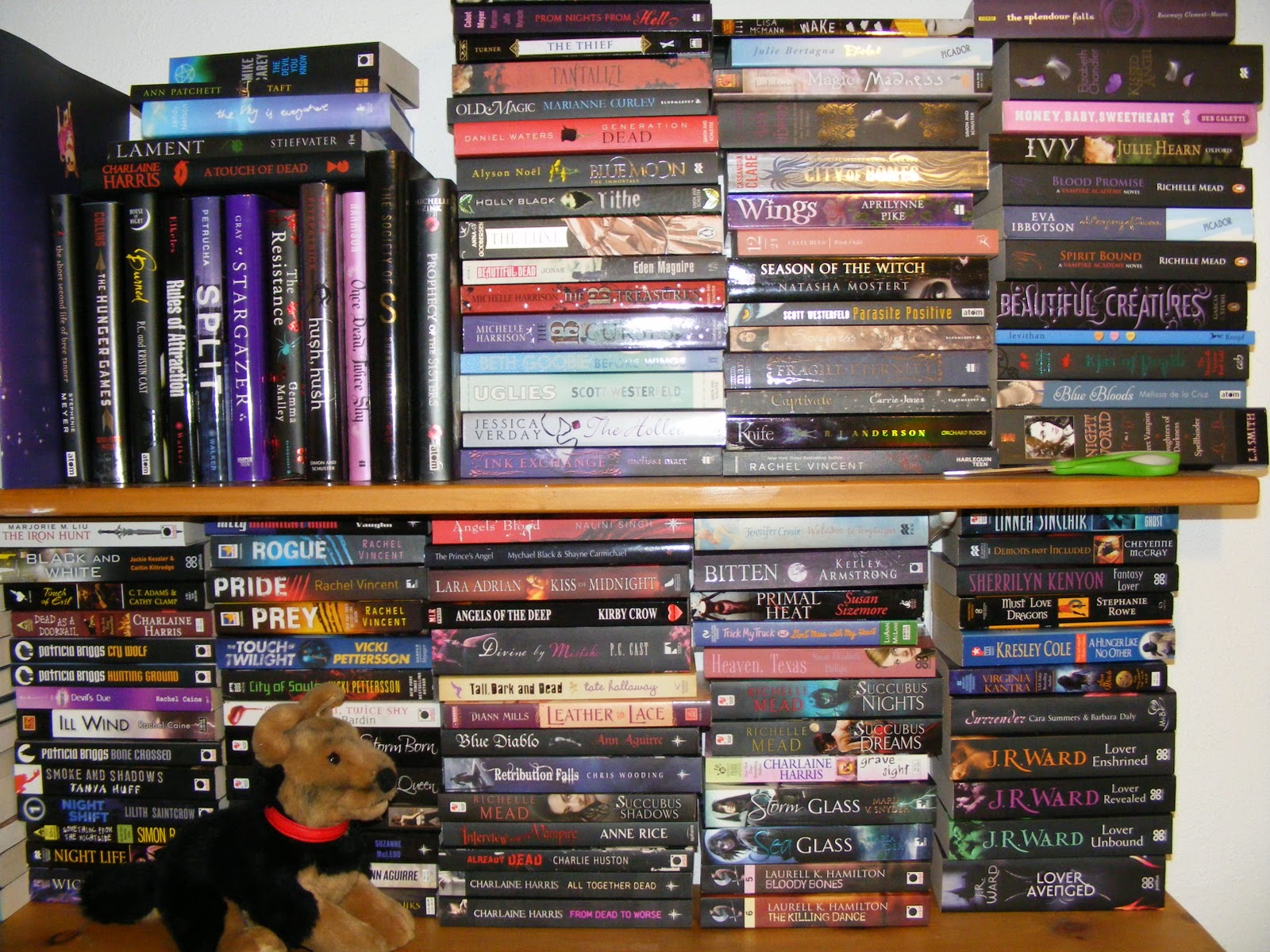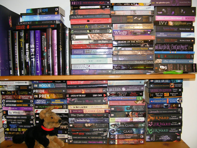 I’m afraid that, because of my limited shelf space, I only keep TBR books on my shelves. If I start putting them away, I forget that I own them and never read them. So let’s look first at my Genre books – YA and UF: