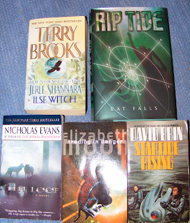 - Startide Rising by David Brin – I know this cover seems rather ridiculous, but I had to buy it. You see, this lovely man pointed at the book while I was going through the SF box at the second hand book sale and said “it’s brilliant”. He was so genuine as he started talking about 1980s feminism in science fiction, I knew I had to give the book a shot. Ridiculous cover or not!